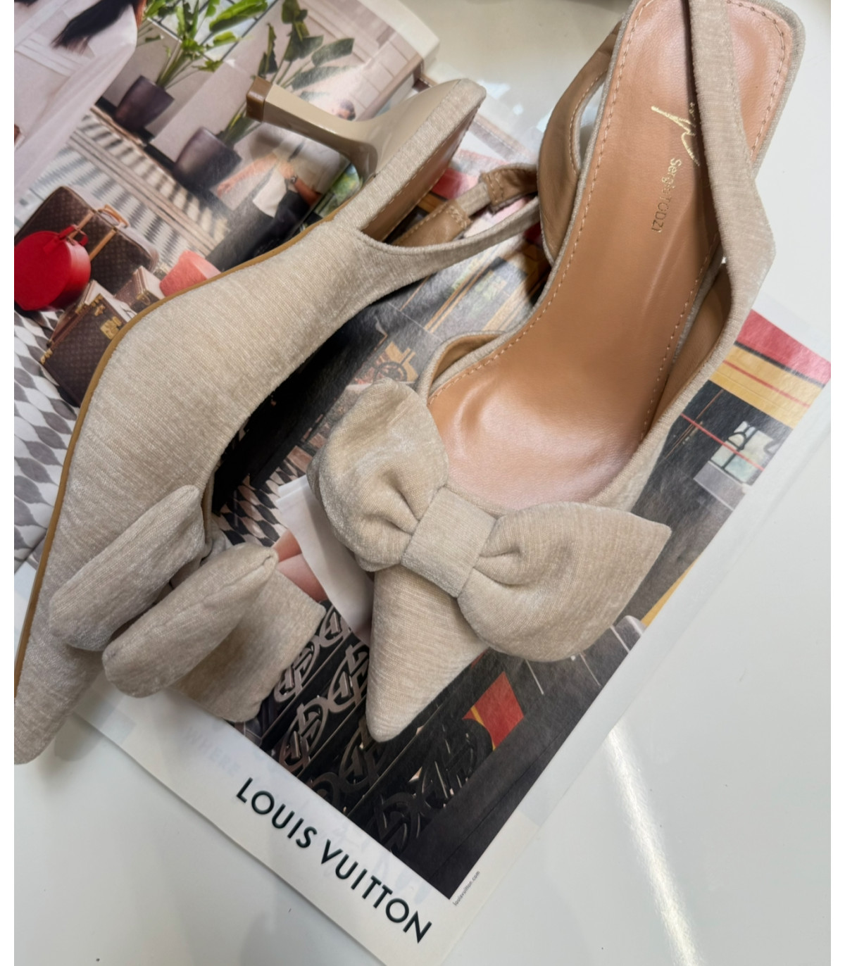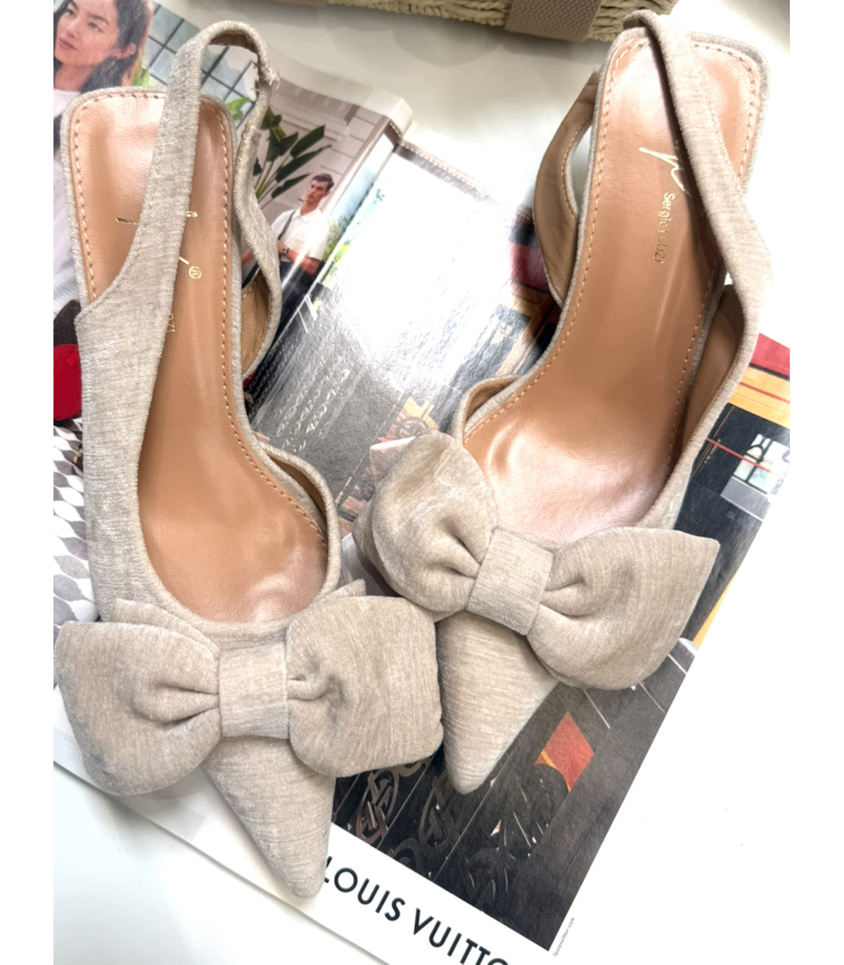 Beżowe kokardki na niskim obcasie