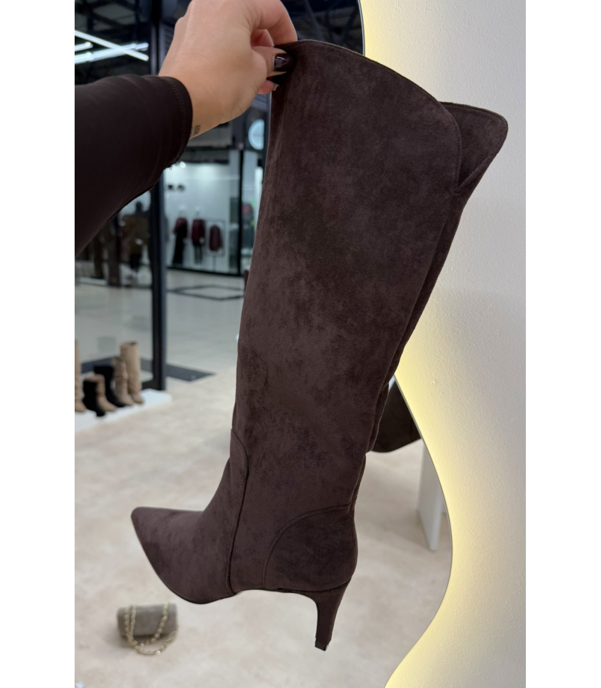 Zamszowe kozaki z rozcięciem z tyłu BRĄZ