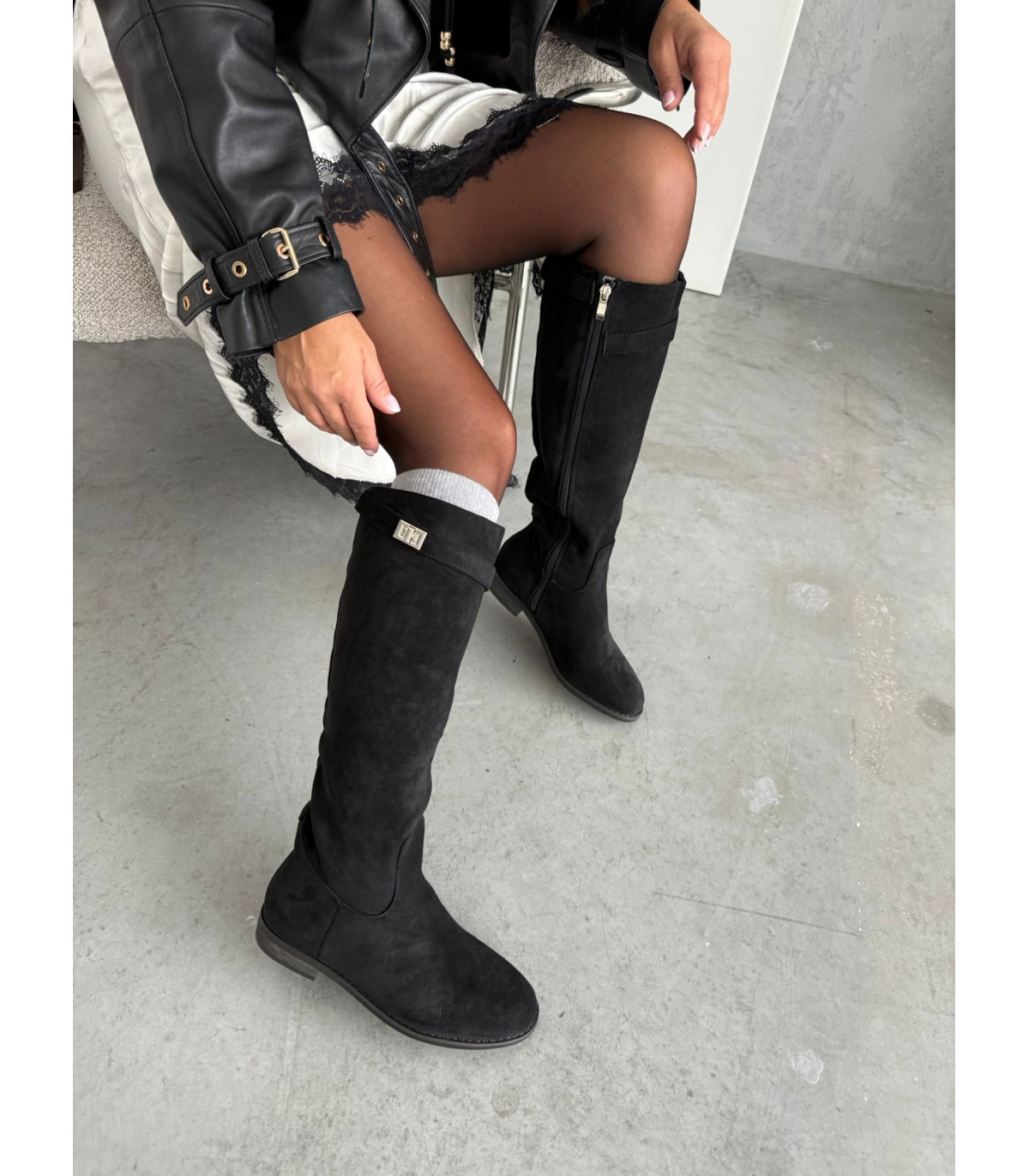 Kozaki Hermi Czarne Zamsz