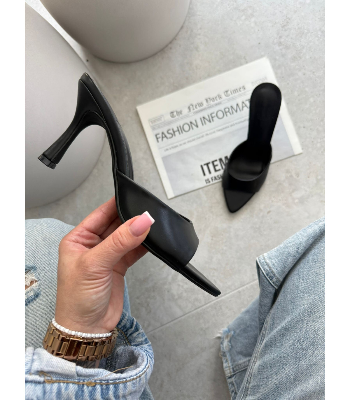 Klapki Camila Na Obcasie Czarne