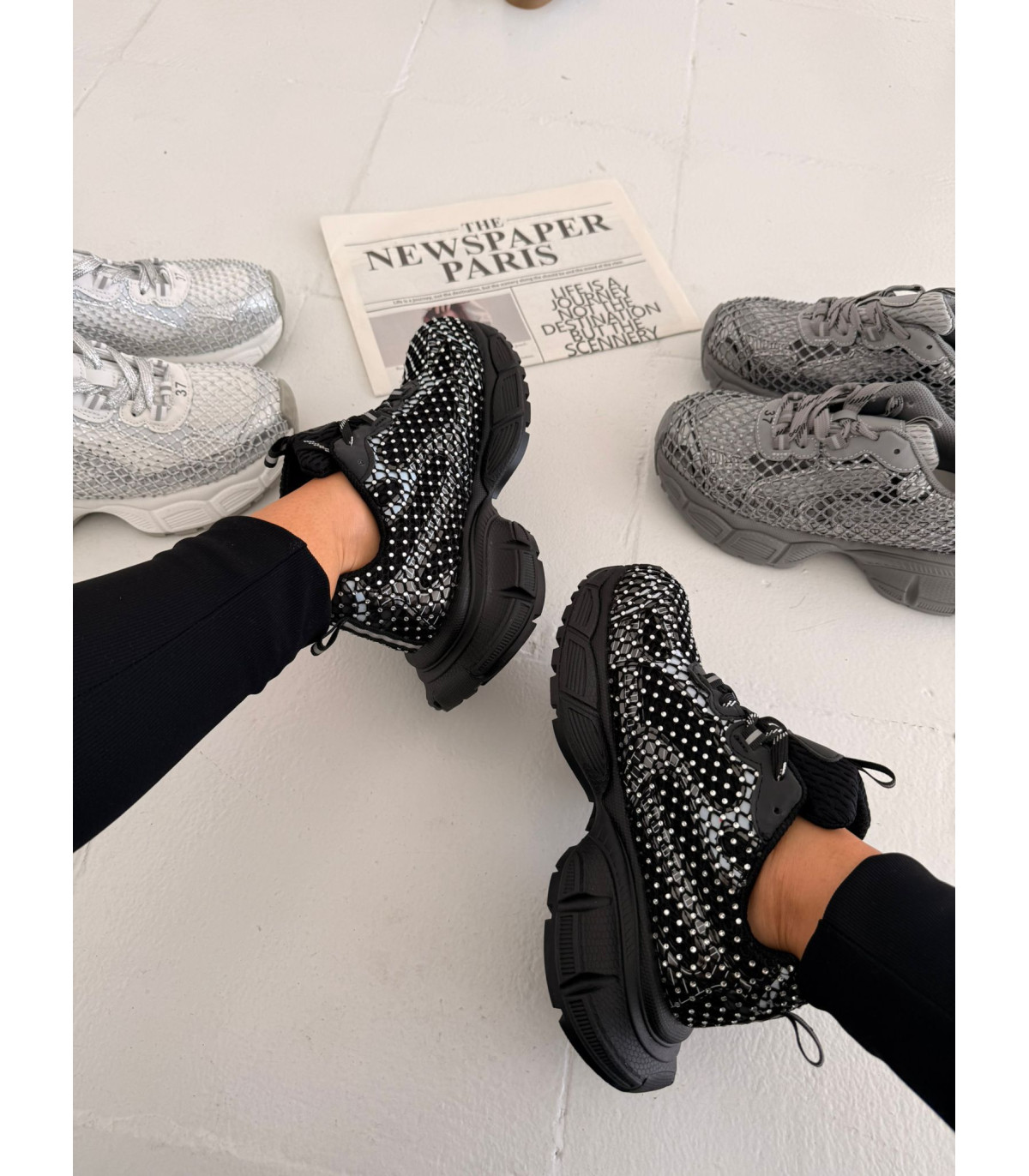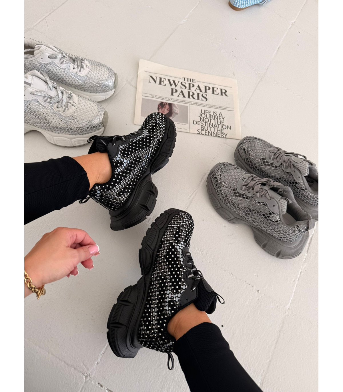 Czarne Sneakersy Cekinowe