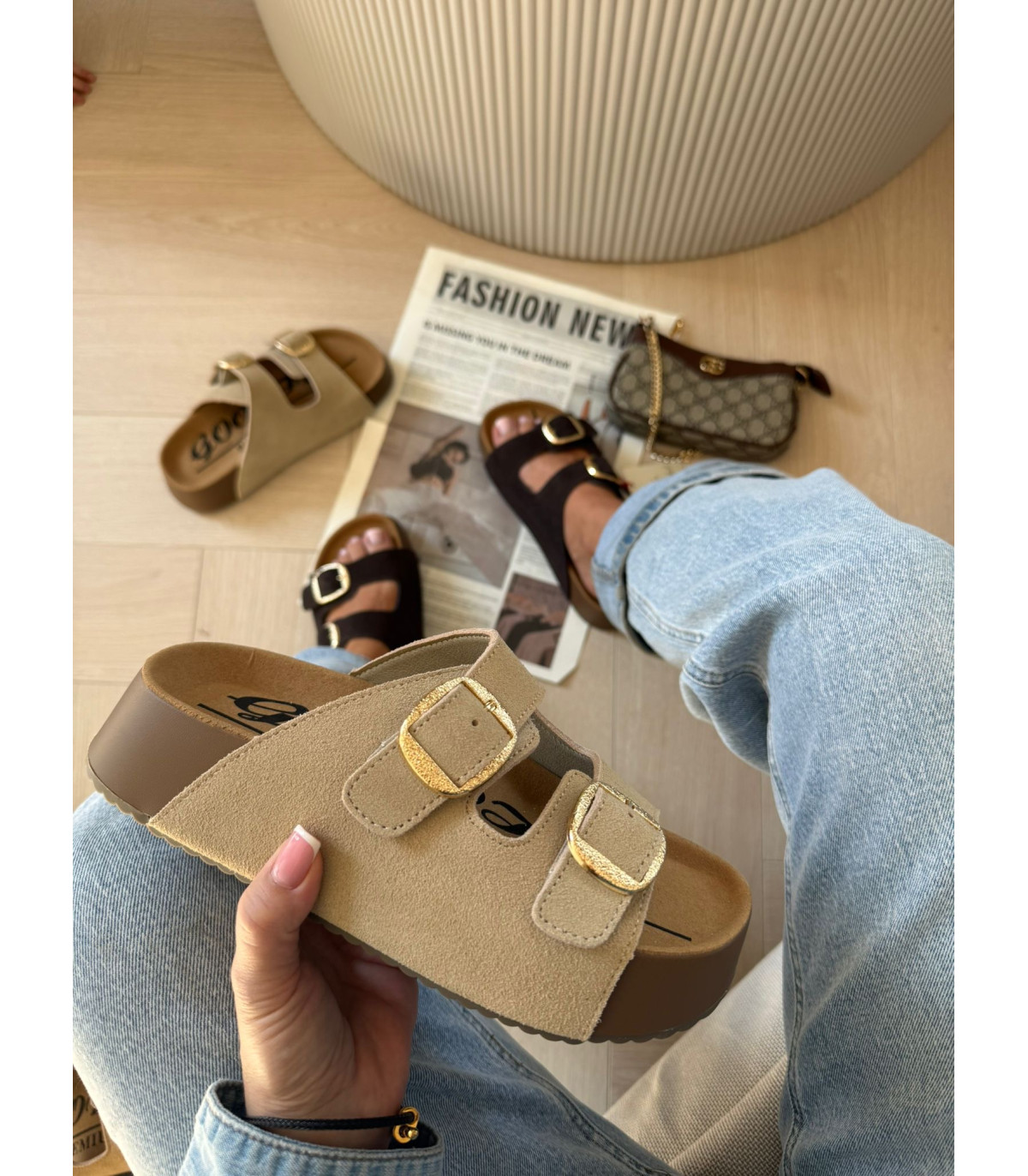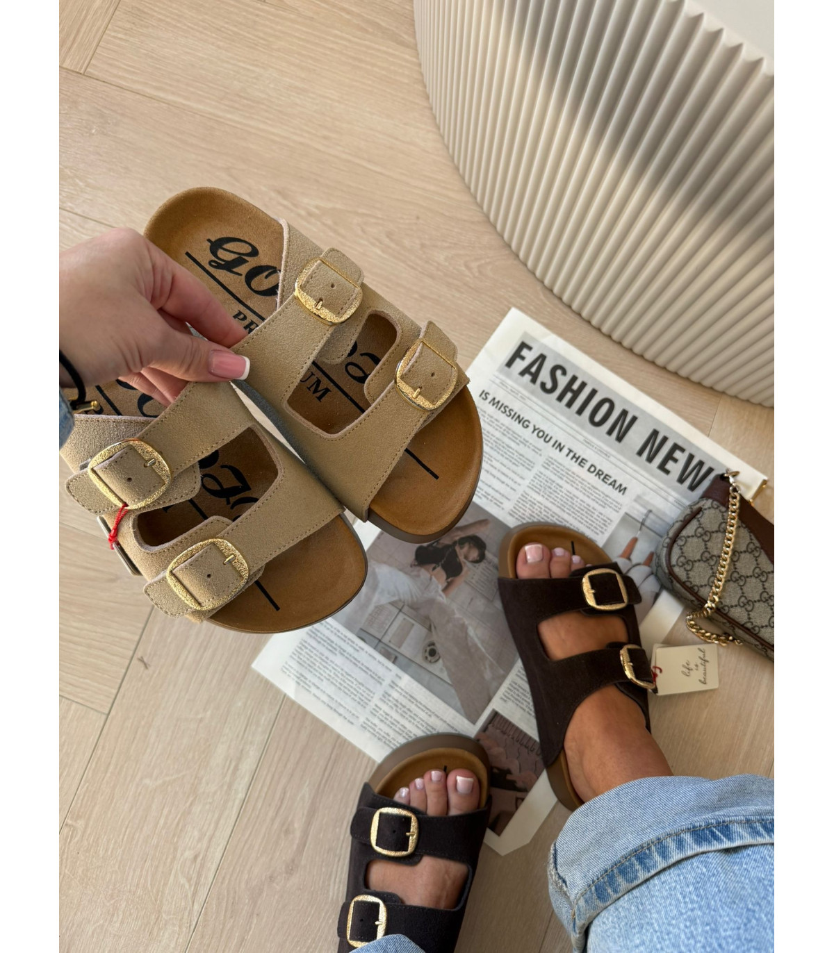 Skórzane Klapki Na Platformie Camel