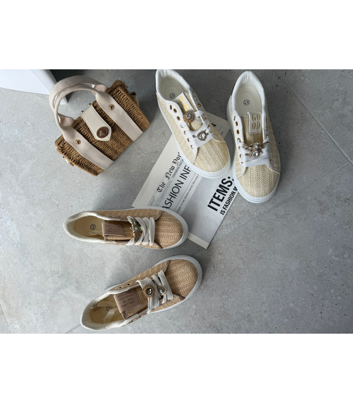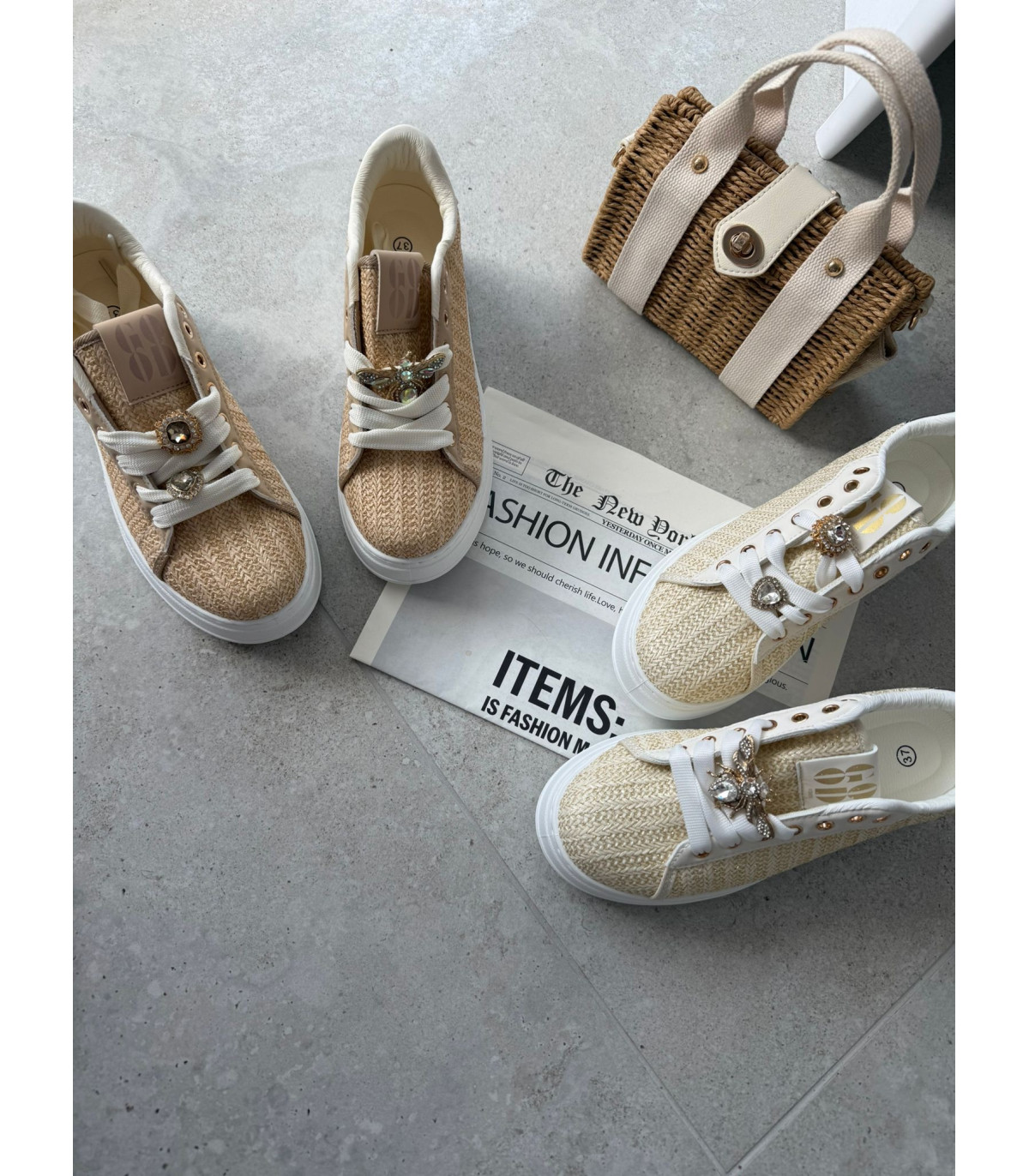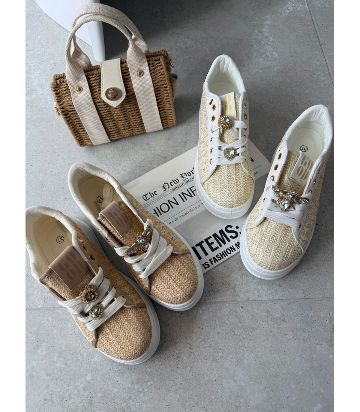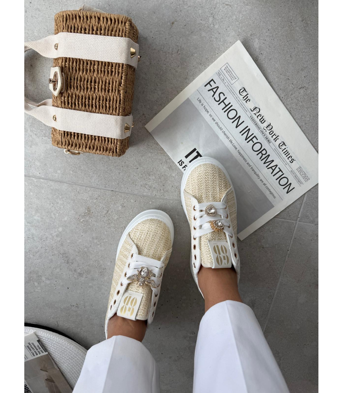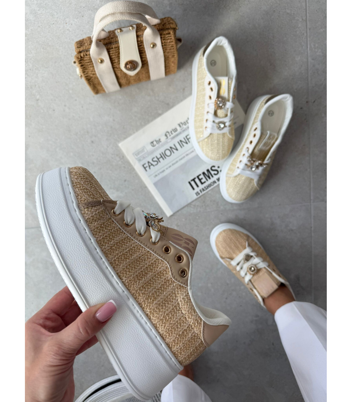 Słomkowe Trampki Na Platformie